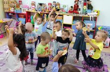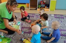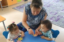 Воспитанники ясельной группы с удовольствием играют в игры на развитие мелкой моторики рук