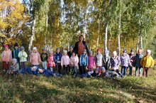 Когда природа нарядилась в золотой наряд, воспитанники старшей группы, под руководством Насыйровой Г.Р. отправились на экскурсию в осенний лес. В это время года в лесу можно увидеть все цвета природного великолепия. Дети пройдясь по шуршащему ковру из осенних листьев, подышав свежим осенним воздухом, понаблюдав за жизнью насекомых, получили море положительных эмоций . Подарив лесу песни, изученных в детском саду, угостившись приготовленными заботливыми руками мам гостинцами, воспитанники в приподнятом настроении, вернулись в детский сад