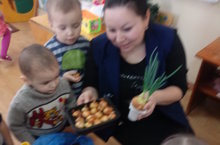 Шушы коннәрдә икенче кечкенәләр төркеме балалары суган утырттылар.Бу хезмәтнең төп максаты булып балаларда хезмәткә хөрмәт тәрбияләү, суганның файдалы яшелчә икәне турында төшенчә бирү һәм суган үстерү тәртибе турында белемнәр бирү иде. Балалар кызыксынып бу эшне башкарып чыктылар, суганның үсүен күзәтеп, үгәрешләрне билгеләп барырга дип махсус китапчык ачтылар