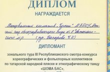 1 ноября 2016 года в районном Доме Культуры состоялся зональный тур III Республиканского смотра-конкурса хореографических и фольклорных коллективов по татарской народной пляске и этнографическому танцу "ШОМА БАС", посвященный 110-летию первого татарского балетмейстера ГАЯ ТАГИРОВА. Танцевальный коллектив сотрудников ДОУ "Чулпан"(руководитель Басыйрова Ч.И.) и танцевальный коллектив воспитанников "Алтынчач"(руководитель Муратова М.З.) стали дипломантами конкурса.