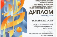 25 сентября в ДК Камаза г.Набережные Челны состоялся зональный тур III Республиканского телевизионного фестиваля творчества работающей молодежи "Наше время-безнең заман", на котором участвовала и стала дипломантом музыкальный руководитель нашего ДОУ Басыйрова Чулпан Инсафовна. Поздравляем и желаем дальнейших творческих успехов!!! -