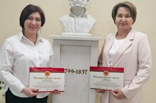 Тарихи кыйммәтләр һәм традицияләрне саклау, рус мәдәниятенең күренекле вәкилләре истәлеген мәңгеләштерүдәге лаеклы хезмәтләре өчен гимназиябез рус теле һәм әдәбияты укытучысы Резеда Шамил кызы Рафикова, директорның инновацион эшчәнлек буенча урынбасары Юлия Валентин кызы Әмирҗанова