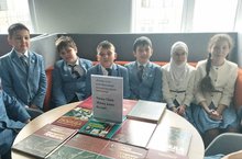 Гимназиябез китапханәсендә Бөек Җиңүнең 77 еллыгына багышланган күргәзмә һәм 5 г сыйныфында әңгәмә уздырылды.