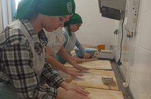 9 сыйныф кызлары тәрбиячеләре Зөлфия Мазхар кызы Хафизова белән токмач кистеләр.