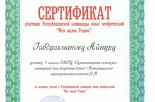 Гимназиянең 7 класс укучысы Габдрахманов Айнур (җитәкчесе Сибгатуллин Ришат Тимершаех улы), Казан дәүләт аграр университеты үткәргән “Минем кече Ватаным” республика яшь уйлап табучылар олимпиадасында катнашып, уңышлы чыгыш ясап кайтты.