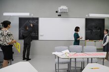 Әлеге фотода 6А сыйныфы укучылары класс җитәкчесе Энҗе Фирдәвес кызы Шәгъзамова белән дәрес вакытында. -