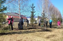 Без бүген өмәдә. Гимназия һәм "Бүләк" укыту-ял үзәгендә тырмалау, буяу, агачларны агарту эшләрен башкардык. Агач төпләрен, чәчәклекләрне казыдык.