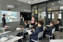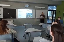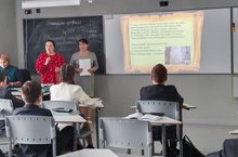 Бүген – 20 февраль көнне, гимназиябездә "Разговоры о важном – Мөһим темага сөйләшү" сыйныф дәресләре Ватанны саклаучылар көненә багышланды. Әлеге фотода 11А сыйныфы укучылары класс җитәкчесе Ирина Альбиновна Нурыева белән дәрес вакытында.