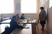 Әлеге фотода 7Б сыйныфы укучылары класс җитәкчесе Миләүшә Мәгъсүм кызы Абдуллина белән дәрес вакытында. -