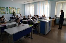 Әлеге фотода 3Б сыйныфы укучылары класс җитәкчесе Айгөл Данис кызы Зиннурова белән дәрес вакытында.
