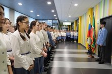 Яңа уку атнасы, гадәттәгечә, дүшәмбе линейкасы белән башланып китте. Тантаналы рәвештә Россия Федерациясе һәм Татарстан Республикасы флаглары кертелде. Олимпиада һәм төрле бәйгеләрдә уңышлары өчен укучыларга грамоталар тапшырылды.