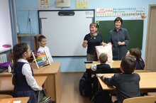 3В сыйныфында математикадан ата-аналар арасында "Математик әкиятләр" проект конкурсы бара. Балалар, һәр дәрестә, гаиләдә бергәләп эшләгән проект эшләрен сыйныф җитәкчесе Дилара Дуглас кызы Хөббетдинова һәм укучылар алдында яклыйлар. Бүген Билалның әнисе Ләйсән Рәдиф кызы Мөхәммәтова укучыларга ачык дәрес күрсәтте.