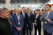 11сыйныф укучысы Айбулат Гаянов күргәзмәдә Татарстан Президенты Рөстәм Нургали улы Миңнехановны гимназиябезнең җиңүче "QR-абонемент Berdam" проекты үзенчәлекләре, мобиль кулланма белән таныштырды. -
