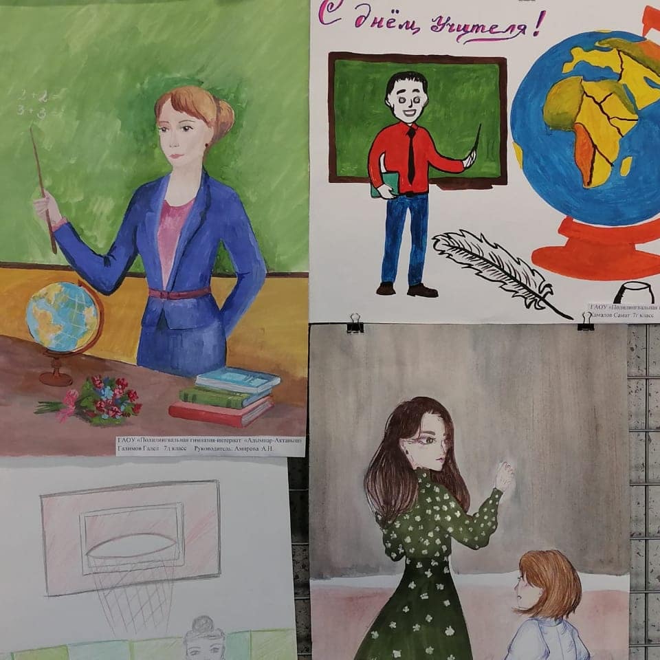 Укучыларыбызның укытучылар көненә ясаган рәсемнәреннән күргәзмә.