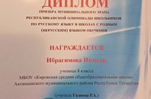 Рус теле фәне буенча район олимпиадасында 8 класс укучысы Ибраһимова Инзилә-призер булды. Укытучы Галиева Рәмилә Әмирҗан кызын, укучыбыз-Инзиләне ихластан тәбриклибез!