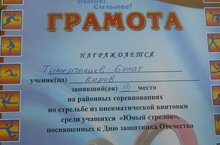 8 февраля на базе ГБОУ " Кадетская школа-интернат имени Героя Советского Союза Хасана Замана" состоялись районные соревнования по стрельбе из пневматической винтовки среди учащихся "Юный стрелок", посвященные к Дню защитника Отечества. Из нашей школы Тимергалиев Булат занял 3 место и награжден грамотой.