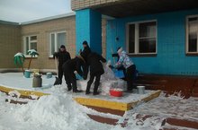 Бүген 1 - 4 класс укучыларының әти - әниләре мәктәп каршысына кар сыннары ясый башладылар.