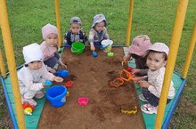 Иң кечкенәләр төркеменә йөрүче нәниләребезнең бакчада узган һәр мизгеле шатлык белән тула. Алар аеруча саф һавада йөрергә яраталар. Ямьле җәйнең җылы көннәрендә рәхәтләнеп уйныйлар. Дөньялар гына имин булсын!