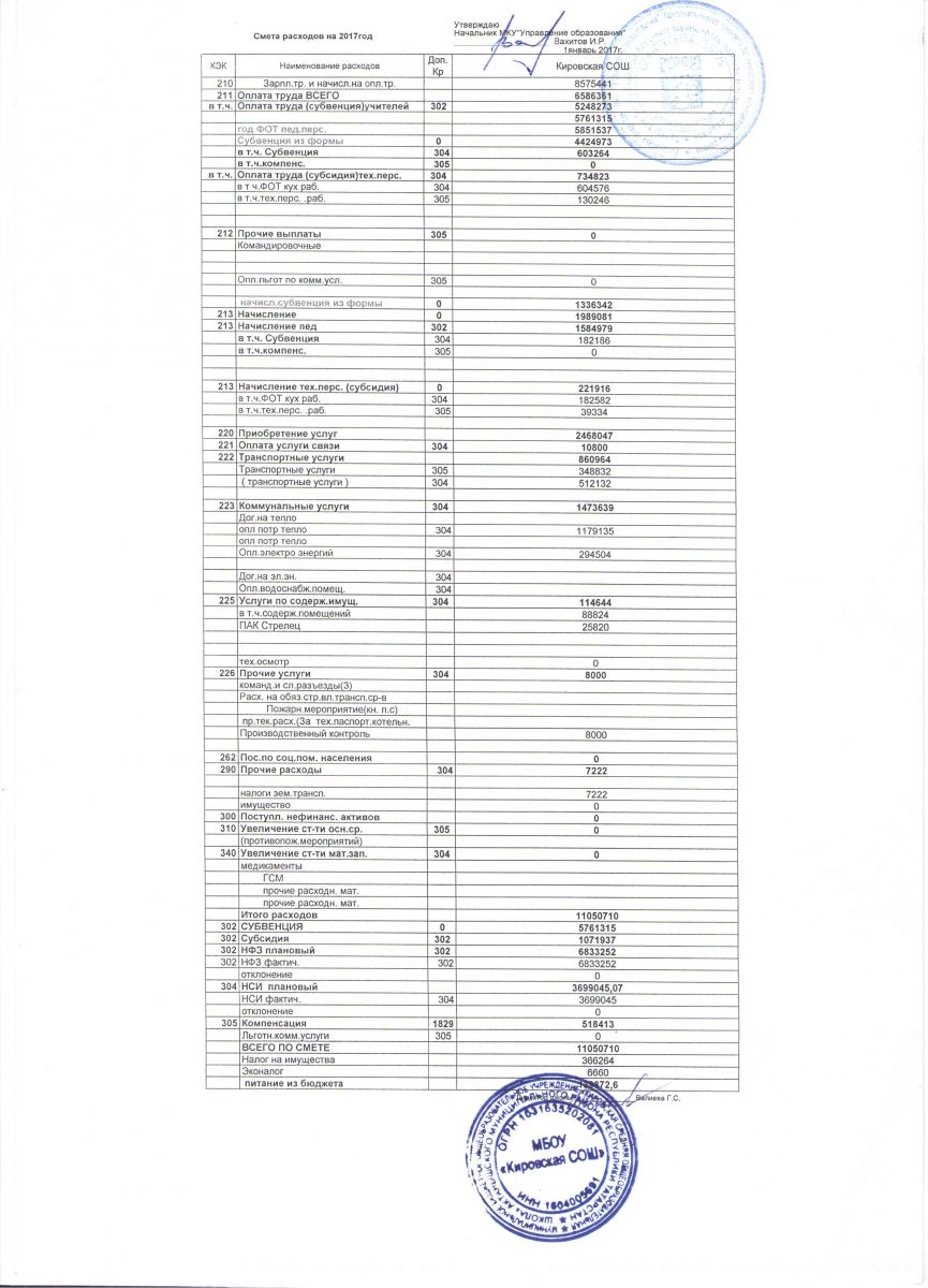 Смета МБОУ "Кировская СОШ" на 2017 год
