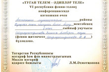 Мәктәбебезнең 6 сыйныф укучысы "Туган телем - әдипләр теле" VI республика фәнни-эзләнү конференциясендә катнашты һәм уңышлы чыгыш ясады. Алдагы сынауларда да уңышлар теләп калабыз!