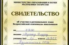 8 класс укучысы Мусин Илдус ОБЖ фәне буенча бөтенроссия олимпиадаларының республика этабында катнашты.