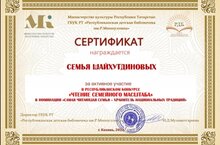 Шәйхетдиновлар гаиләсе "Гаилә масштабында уку" республика конкурсында катнашып сертификатка ия булдылар. Котлыйбыз! Сезгә алга таба да уңышлар телибез.