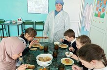 Сегодня в Кузякинской школе член родительского комитета Фазлиева Ильсеяр проверила организацию питания учащихся. Увидела, что приготовленная еда качественная, по меню. Проверила вкус. Она осталась довольна чистотой в столовой, тем, что дети с удовольствием едят.