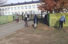 Учащиеся вышли на субботник на уборку территории школы.