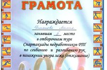 Спартакиада педработников 25.01.2016 23 января в УСК "Актаныш" состоялся отборочный тур Спартакиады педработников РТ. Усманова Л.Р. заняла 2 место по отжиманию.