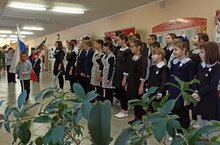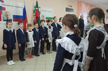 Понедельник, по традиции, начался с общешкольной линейки, выноса флагов и исполнения гимнов РТ и РФ, отчёта дежурных.