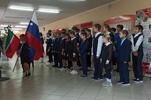 Право вынести флаги было предоставлено в этот раз учащимся 2 и 4 классов. -