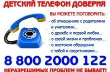 Единый общероссийский телефон доверия для детей, подростков и их родителей 8-800-2000-122.
