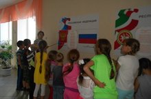 Мероприятие «Моя Родина-Россия» 11.06.2016 11 июня в пришкольном лагере «Солнышко» прошел День России. Файзуллина Г.А. провела с ребятами мероприятие «Моя Родина-Россия». Учащиеся активно участвовали в играх, решении кроссворда, составлении пословиц. В конце дня был организован конкурс рисунков.