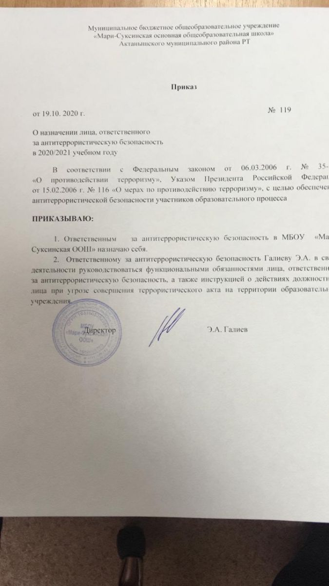 Приказ о назначении ответственного лица за профилактику терроризма и экстремизма