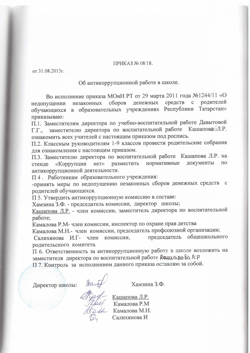 План антикоррупционной деятельности МБОУ "Минняровская ООШ" на 2020-21 учебный год