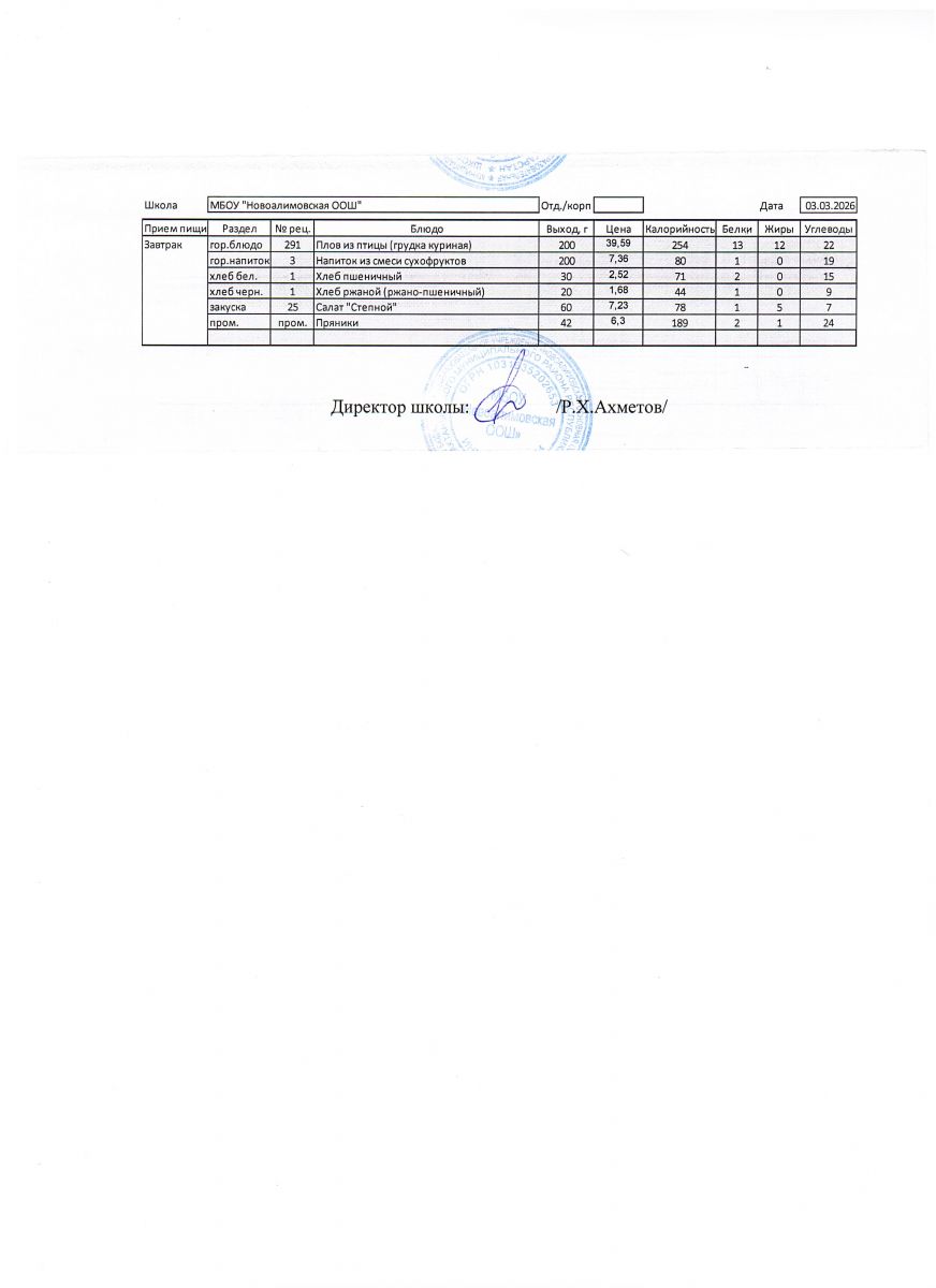 Однодневное меню на 3 марта 2026 г.