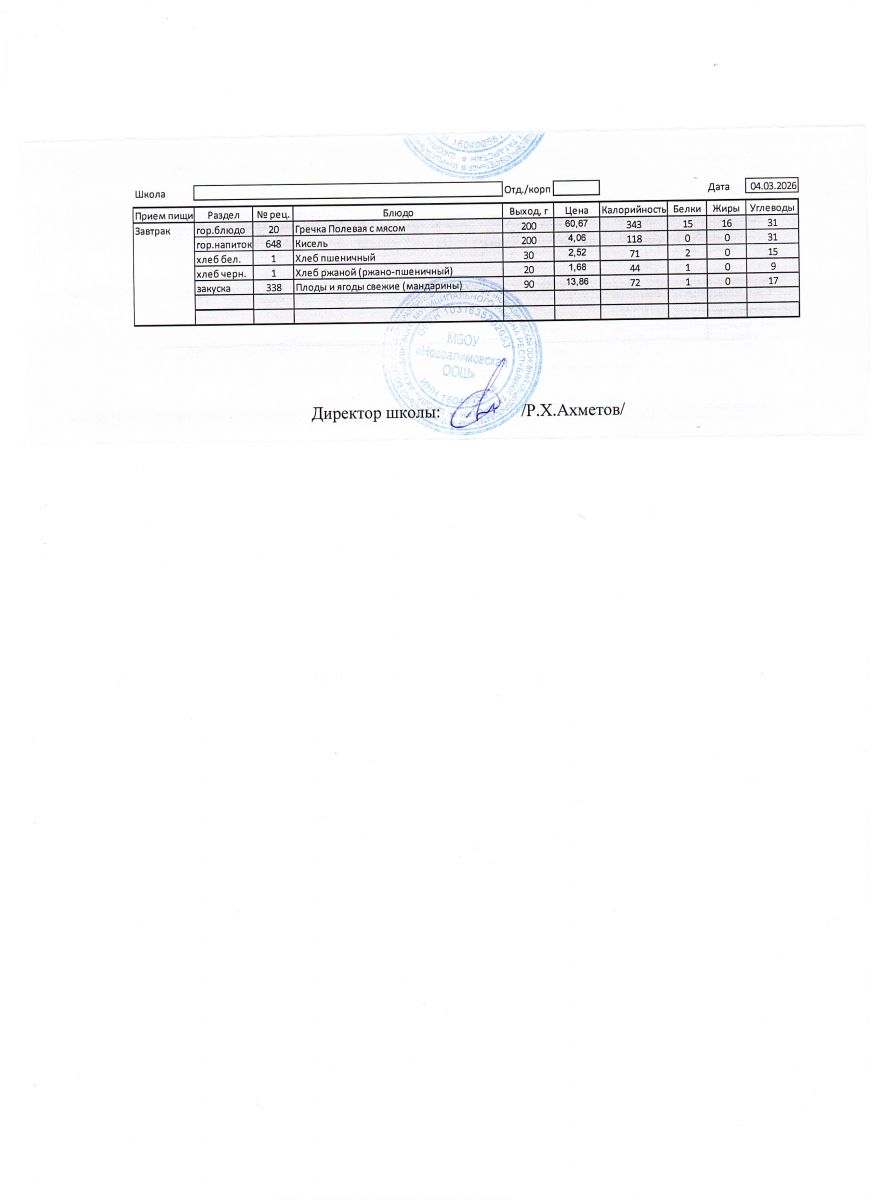 Однодневное меню на 4 марта 2026 г.