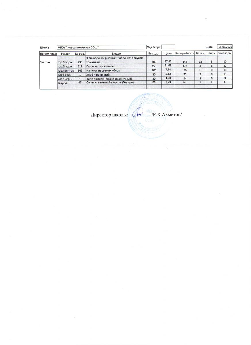 Однодневное меню на 5 марта 2026 г.