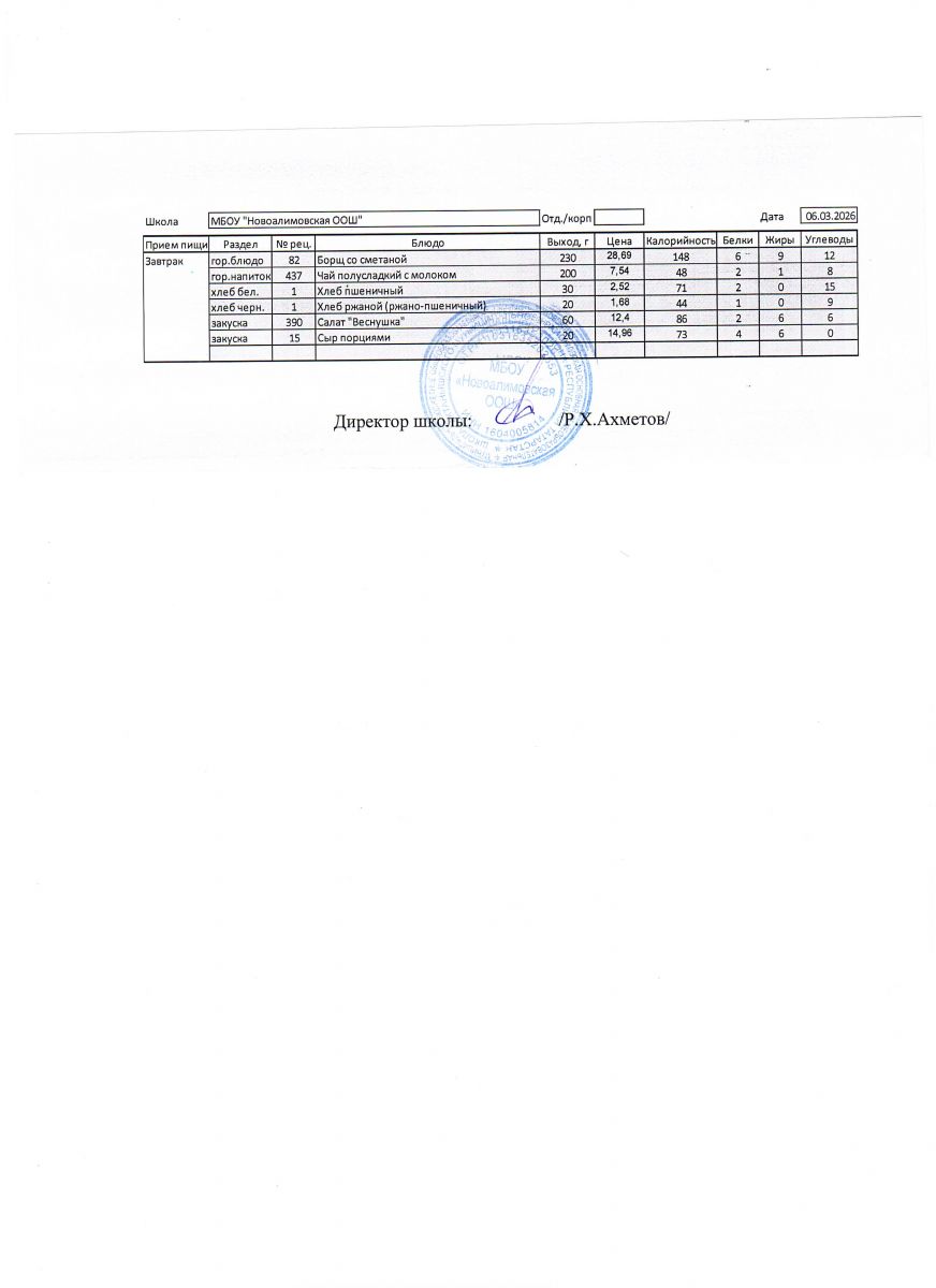 Однодневное меню на 6 марта 2026 г.