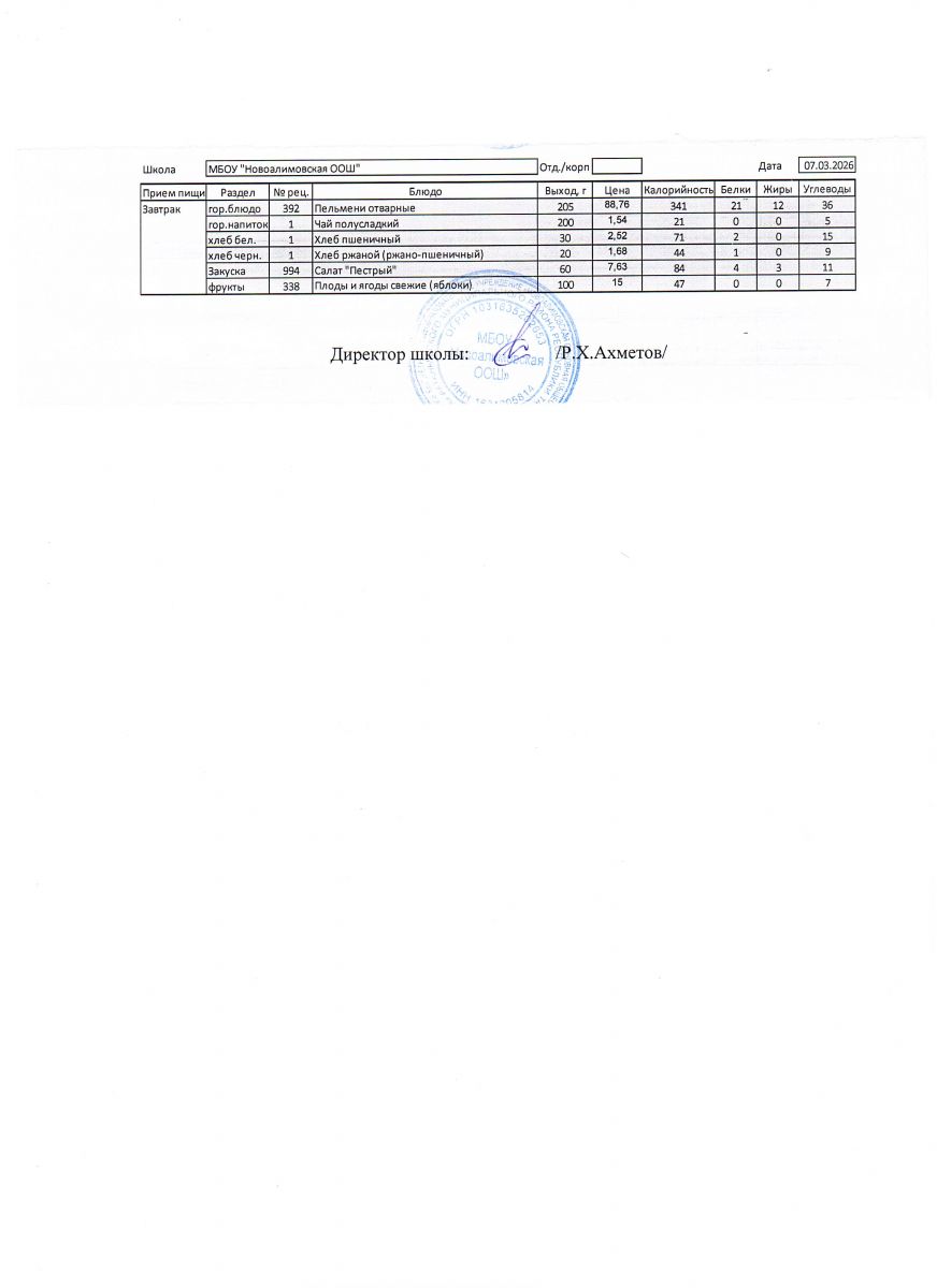 Однодневное меню на 7 марта 2026 г.