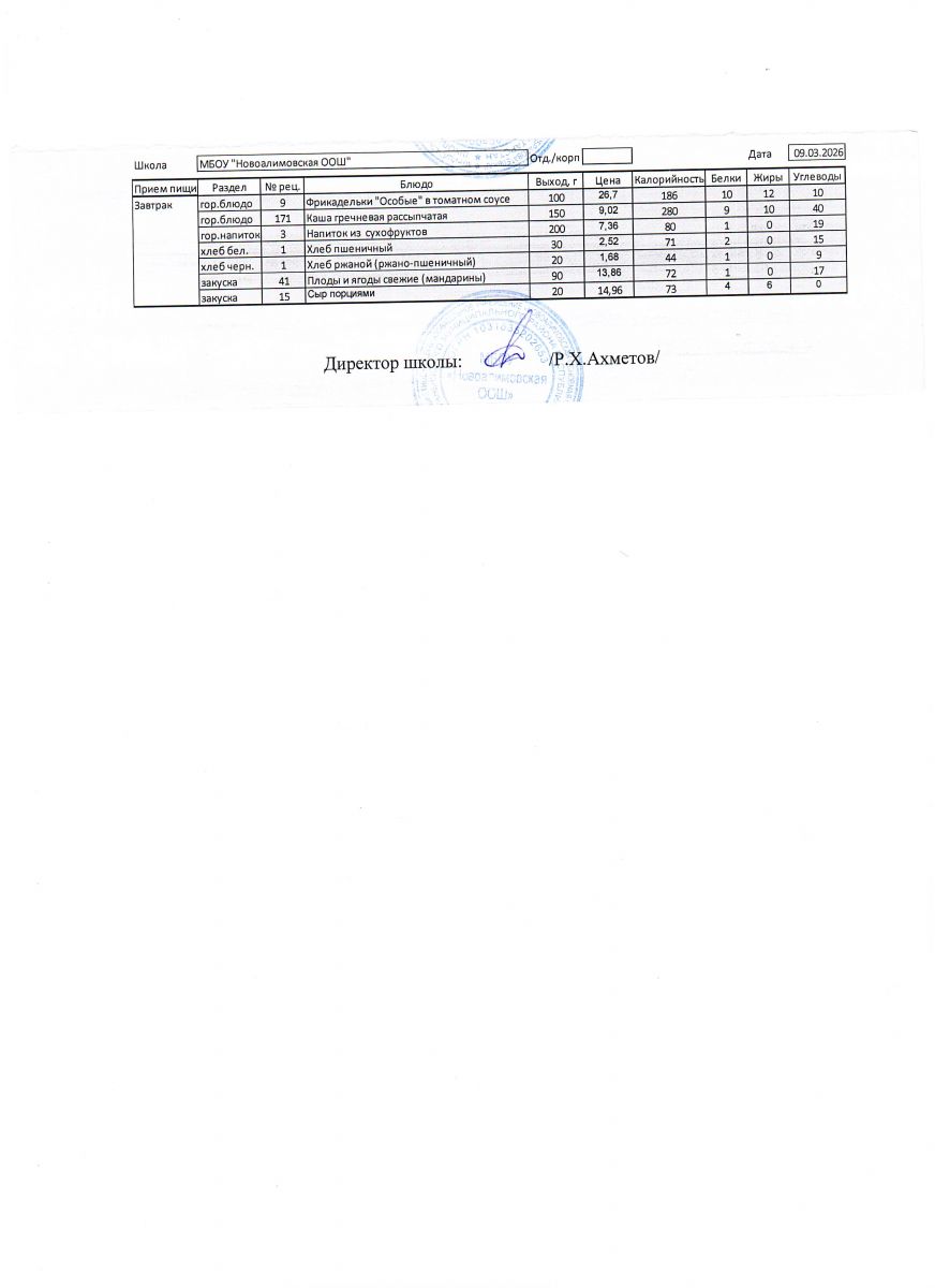 Однодневное меню на 9 марта 2026 г.