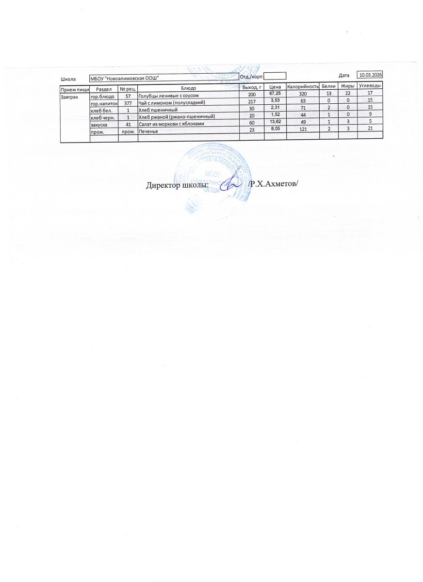 Однодневное меню на 10 марта 2026 г.
