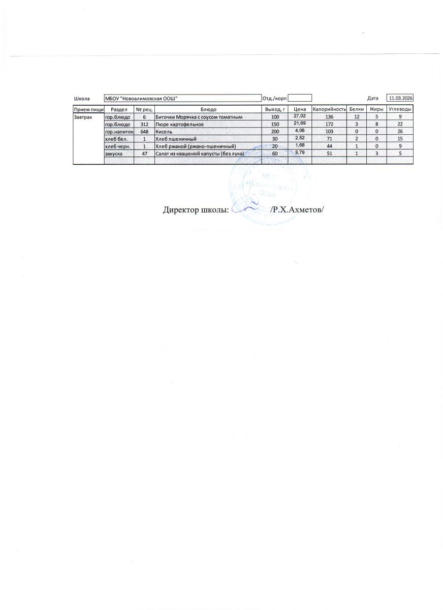 Однодневное меню на 11 марта 2026 г.
