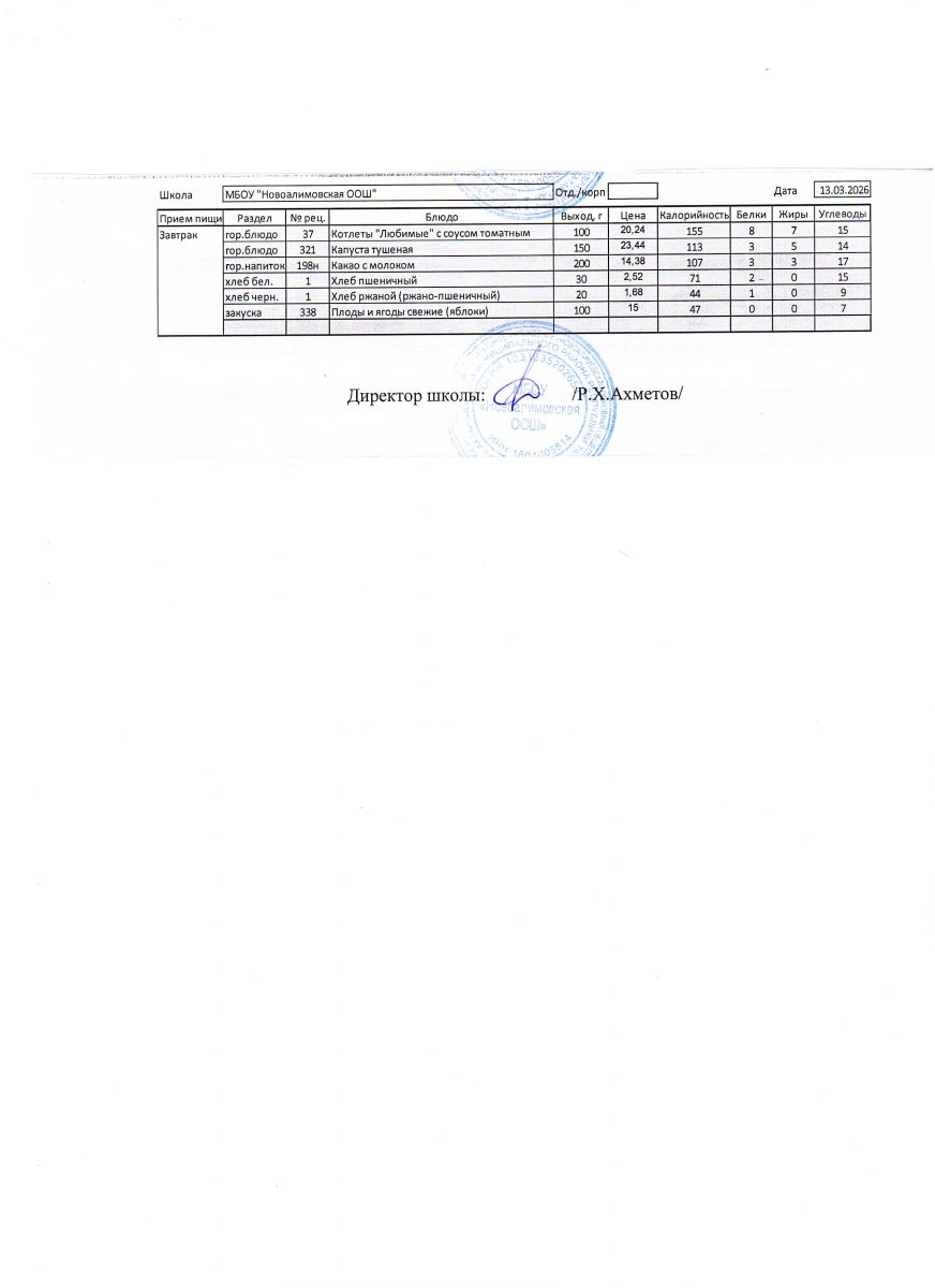Однодневное меню на 13 марта 2026 г.
