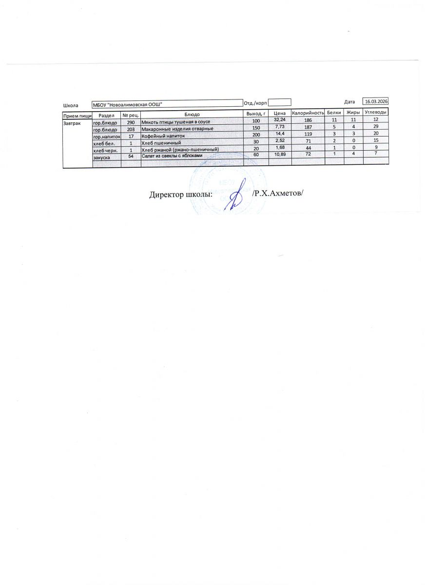 Однодневное меню на 16 марта 2026 г.