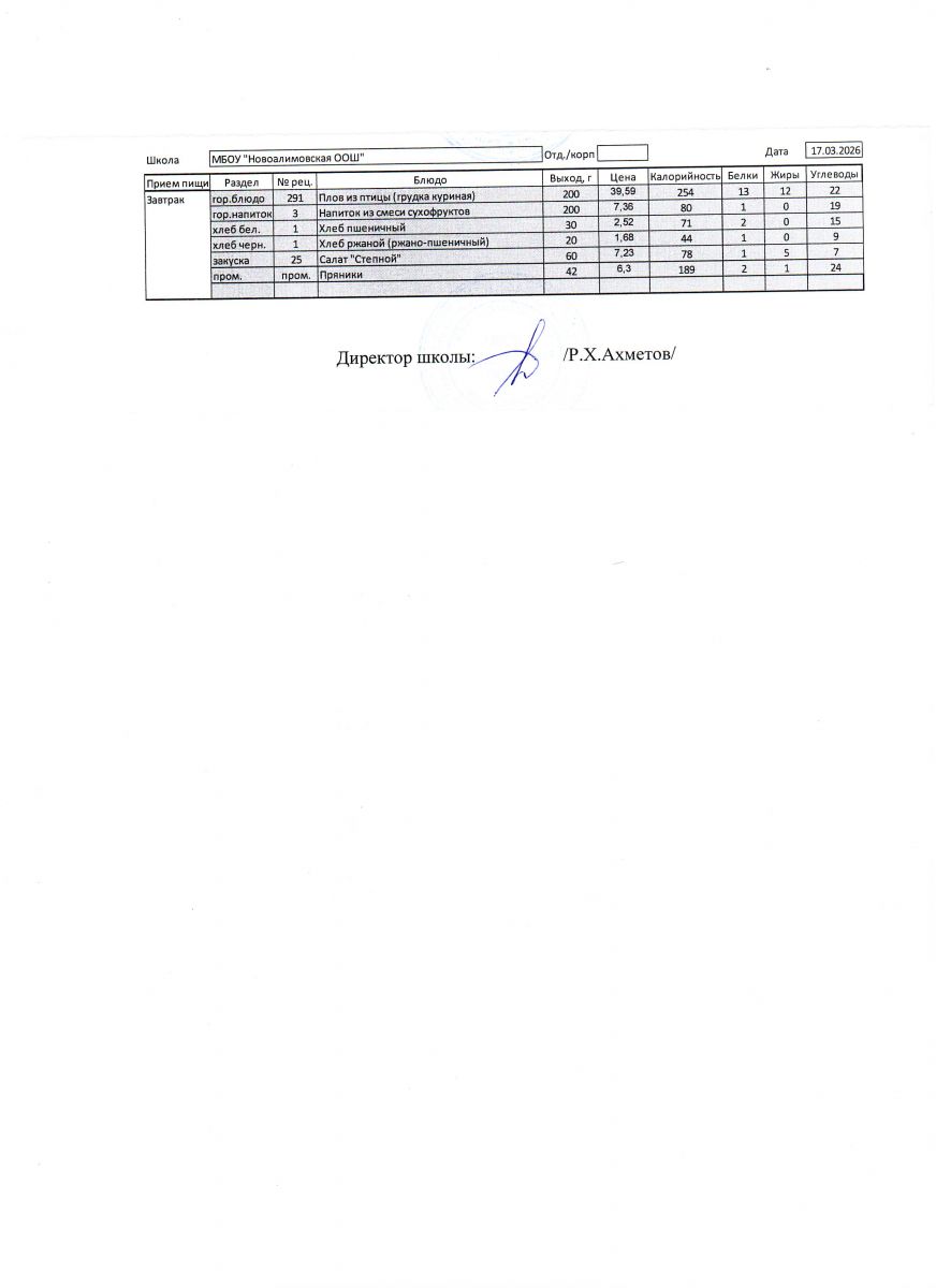 Однодневное меню на 17 марта 2026 г.