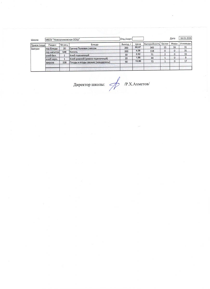 Однодневное меню на 18 марта 2026 г.
