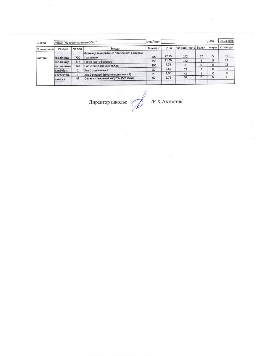 Однодневное меню на 19 марта 2026 г.