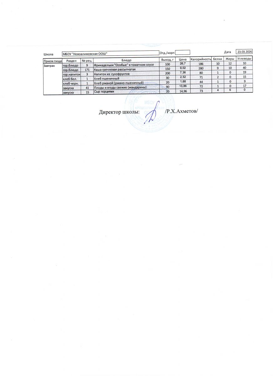 Однодневное меню на 23 марта 2026 г.