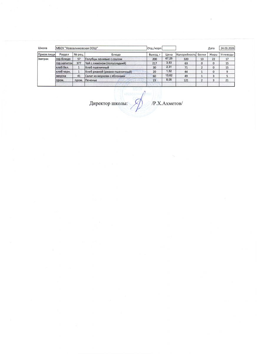 Однодневное меню на 24 марта 2026 г.